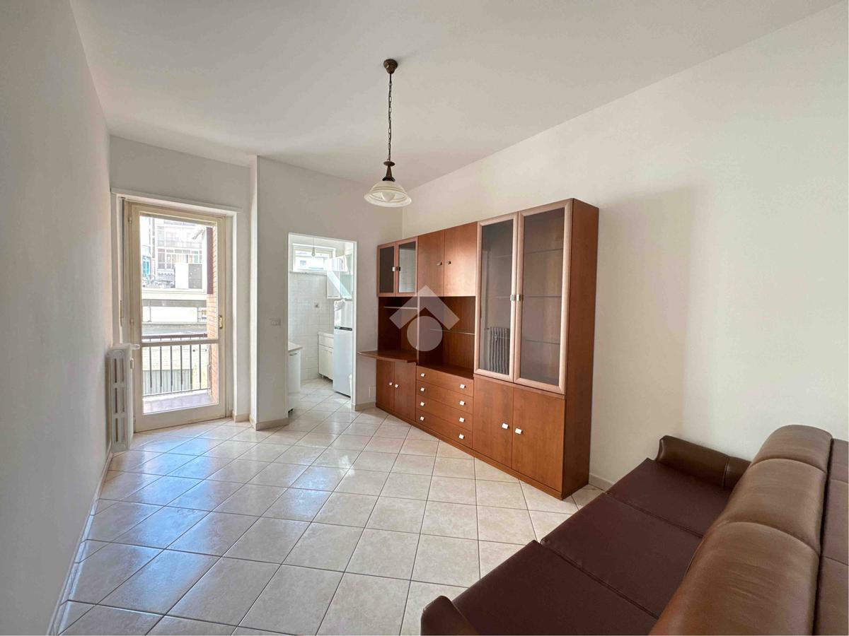 È composto da un grande ingresso che dà l'accesso a tutte le stanze. La zona giorno è formata dal tinello con porta finestra che dà l'accesso al balcone che affaccia sul cortile interno, silenzioso, e con annesso un comodo e spazioso cucinino, finestrato.