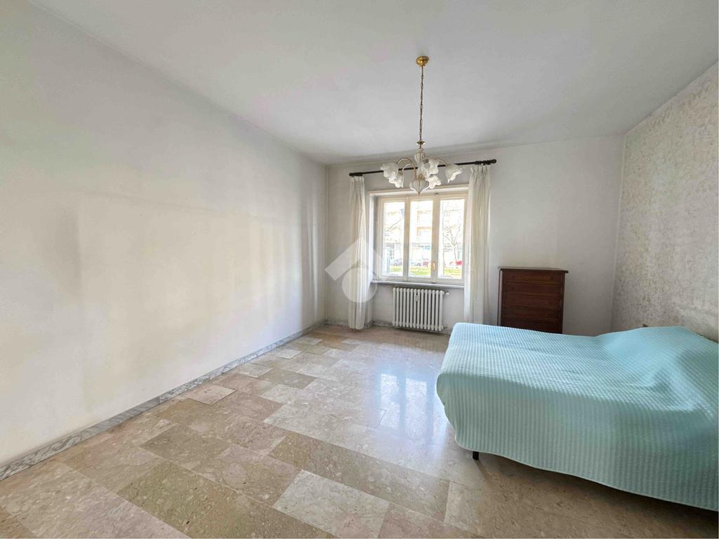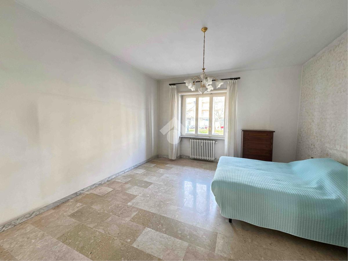 La zona notte include una camera da letto, anch’essa di generosa metratura, con finestra che affaccia su Corso Siracusa. Il bagno è finestrato ed è stato ristrutturato, con doccia.
