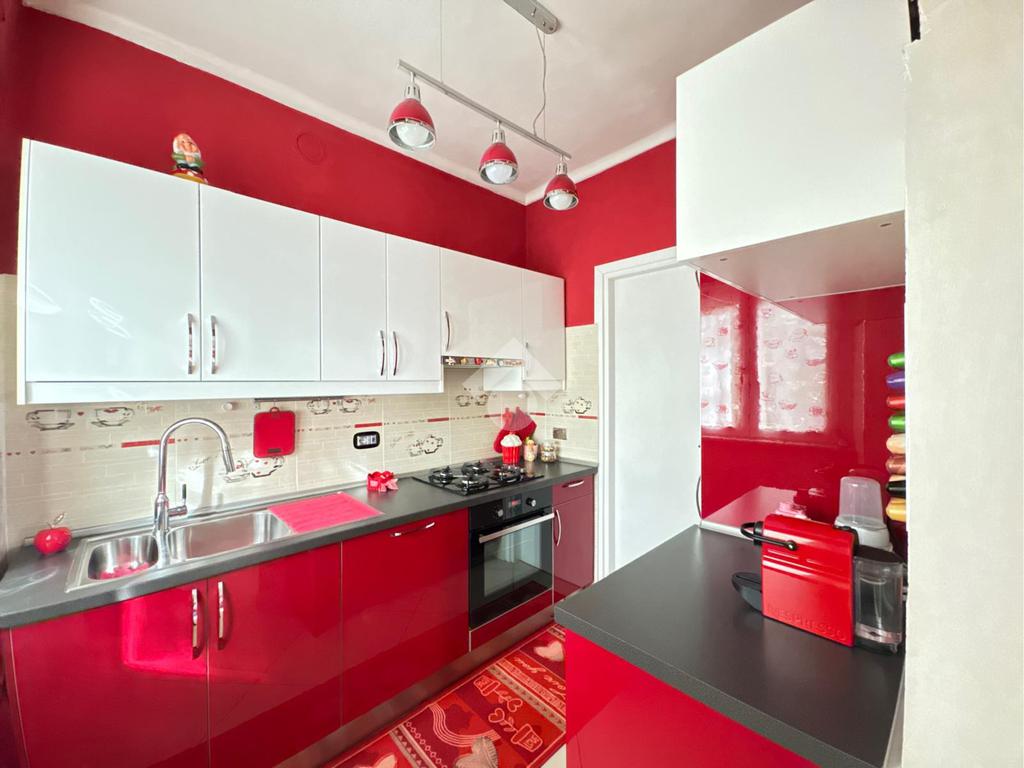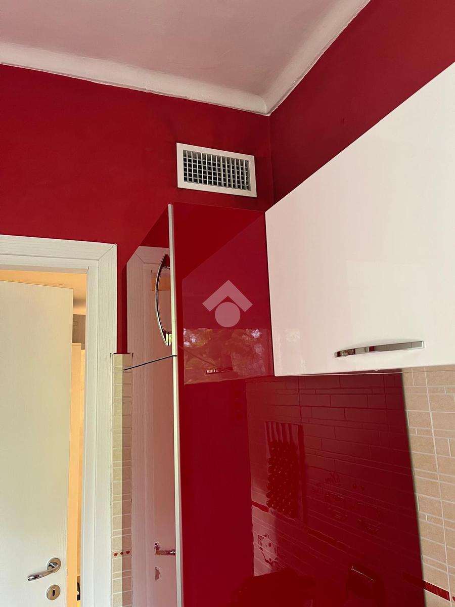 La zona cucina è ampia, in quanto è presente una comoda cucina lineare su ambo i lati, è finestrata e vi si può accedere sia dal soggiorno sia dall'ingresso attraverso una porta.