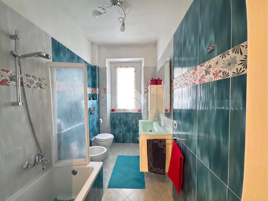 Il bagno è squadrato e finestrato ed è dotato di vasca.